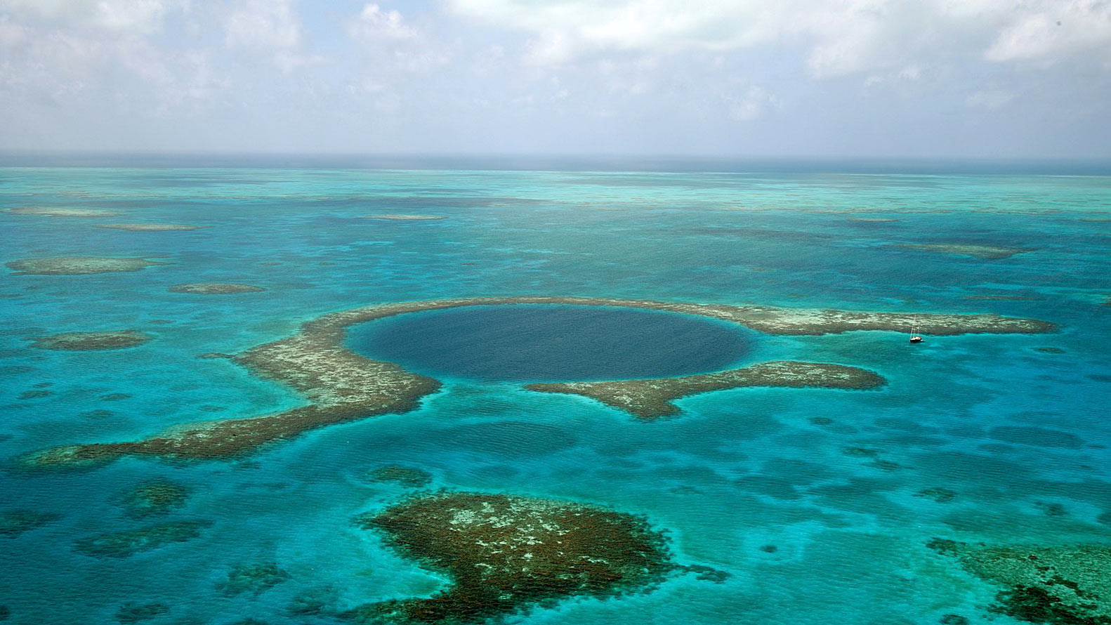 세계적으로 유명한 다이빙 명소인 **그레이트 블루 홀(The Great Blue Hole)**은 거대한 해저 싱크홀로 많은 다이버들의 로망이다.