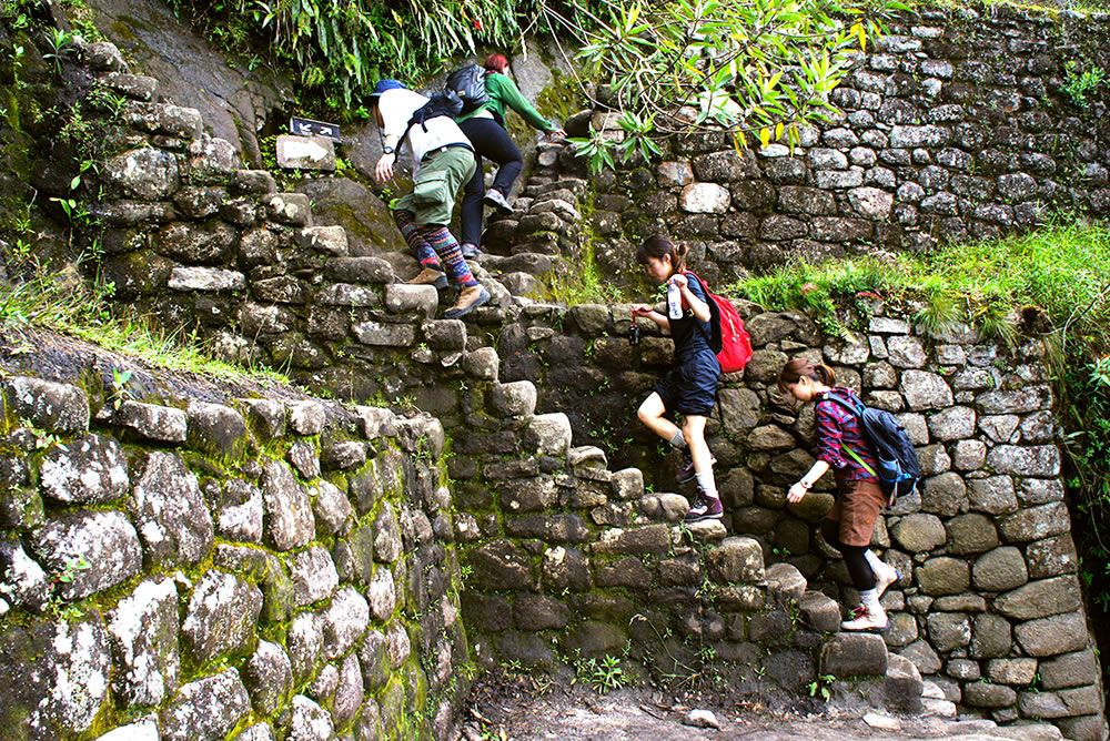 가파른 잉카 트레일을 오르는 것은 도전이 될 수 있지만, 정상에 올라 숨을 고르고 경치를 바라보면, 왜 고대 잉카인들이 이렇게 외진 곳에 거대한 건축물을 세웠는지 자연스레 생각하게 될 것입니다. (최상의 전망을 위해 구름이 걷히길 기대해 보세요!)