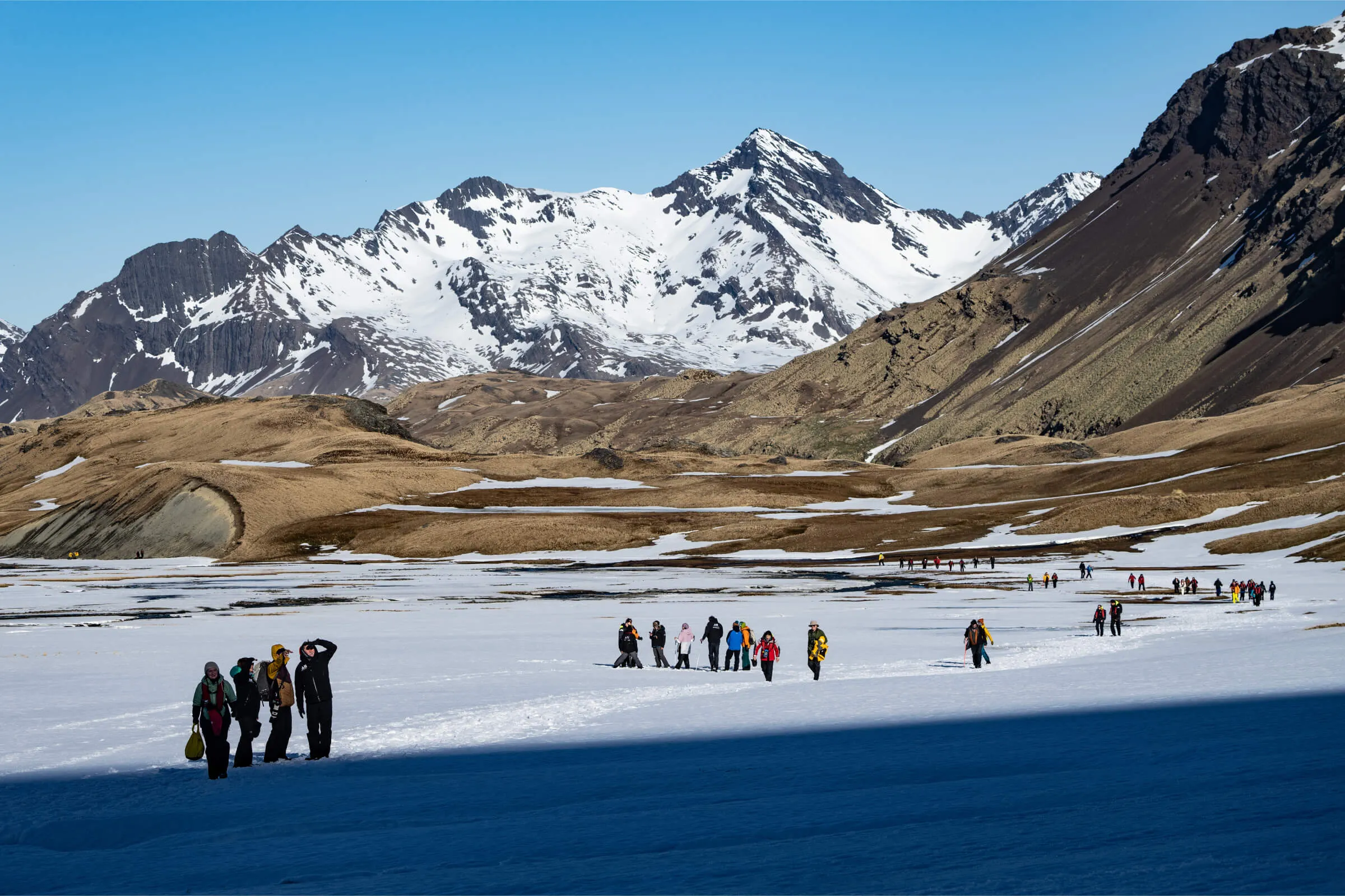 남극 남조지아섬을 방문하기 가장 좋은 시기는 매년 11월부터 이듬해 2월까지, 즉 그곳의 여름철입니다. 이 시기의 기온은 상대적으로 따뜻하고, 낮 시간이 길며, 날씨가 비교적 안정적이어서 야생동물 관찰에 적합합니다. 특히 12월에서 1월에는 펭귄들이 알을 품고 새끼가 부화하는 감동적인 장면을 직접 볼 수 있으며, 이 시기는 물범 새끼들이 활발히 활동하는 시기이기도 합니다. 선박 예약과 탐험 일정이 매우 인기가 많기 때문에 최소한 1년 전에는 일정을 예약하는 것이 원활한 여행을 위해 권장됩니다.