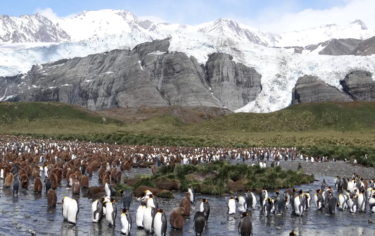 남극 남조지아섬은 그 고립된 특성 덕분에 매우 원시적이고 온전히 보존된 자연환경을 간직하고 있습니다. 섬에는 믿기 어려울 정도로 많은 야생동물이 서식하며, 수만 마리에 이르는 황제펭귄과 코끼리물범, 남극모피물범, 그리고 신천옹 등이 이곳에서 번식하고 있어 세계에서 가장 중요한 극지 생태 서식지 중 하나로 평가받고 있습니다.