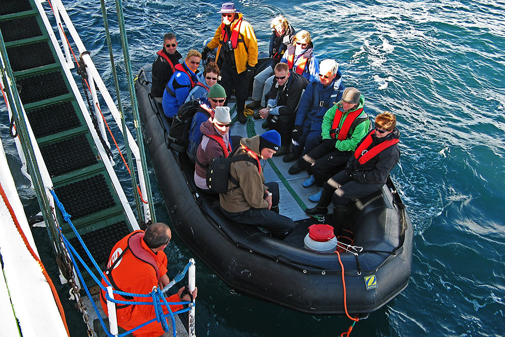 배나 조디악 보트에서 자연을 관찰할 때는 항상 주의해 주세요.