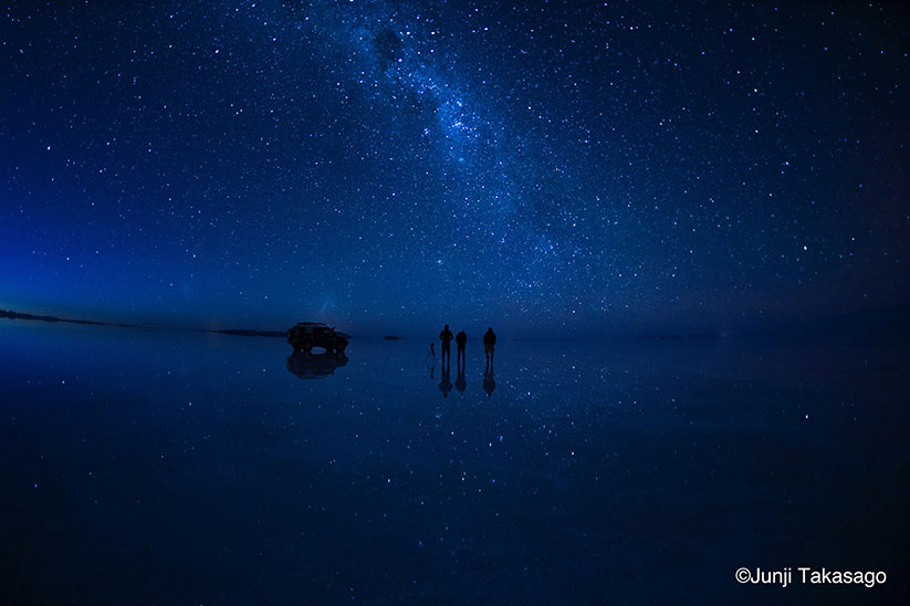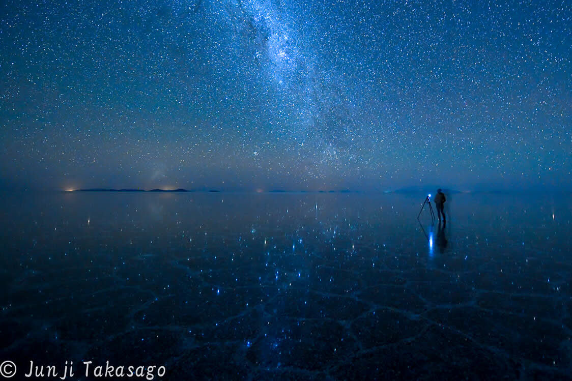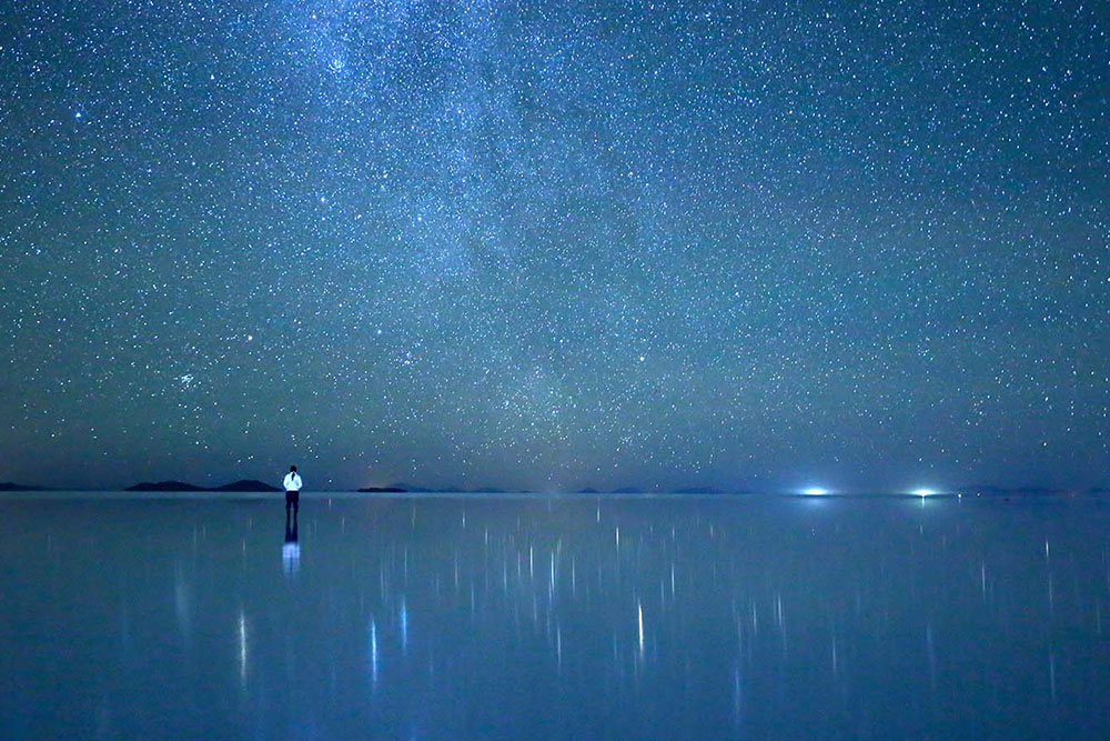 이곳은 상상을 초월하는 세계, 그저 놀랍다는 표현으로는 부족할 정도입니다. 우유니 소금사막 위에서 별들이 가득한 밤하늘을 경험하려면 완벽한 날씨가 필요합니다. 물 위에 비친 별들, 맑은 하늘, 그리고 적당한 달빛이 어우러져야만 그 환상적인 풍경을 만날 수 있습니다.