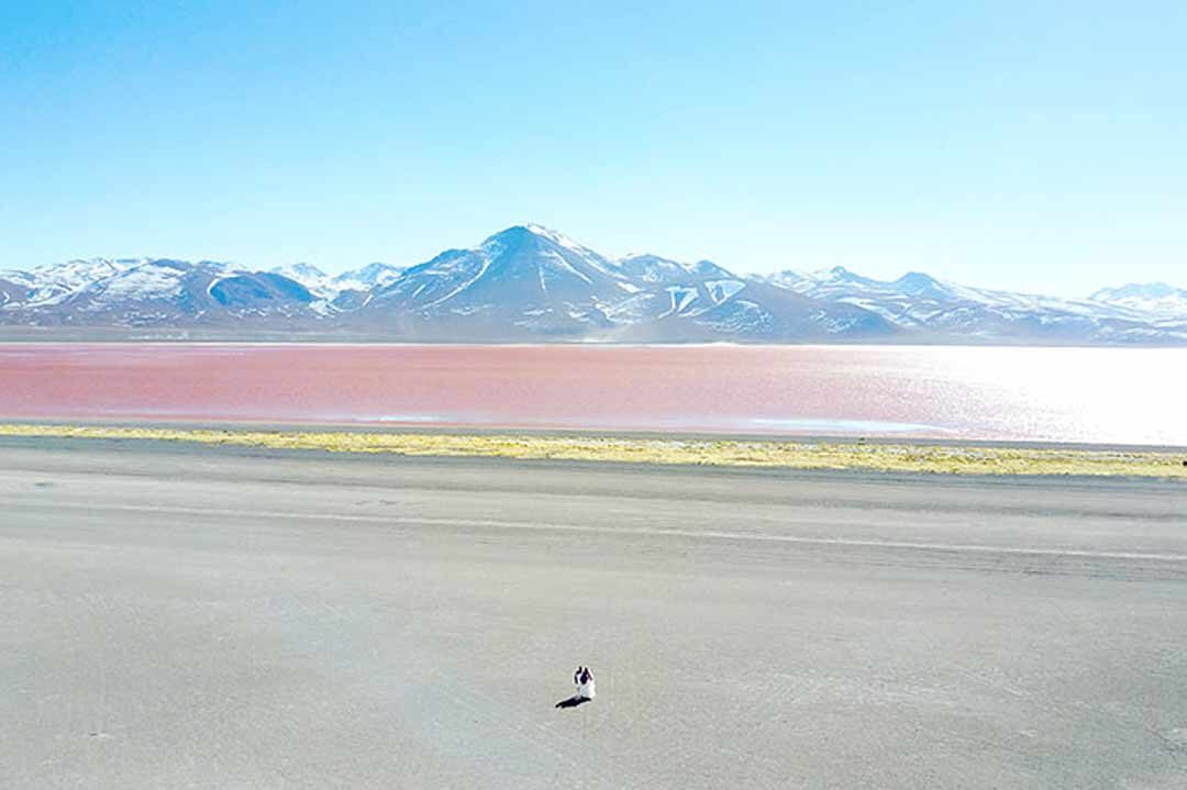 먼저 해발 4,500m에 위치한 청록빛 **라구나 베르데(Laguna Verde)**를 방문합니다. 물속에 포함된 미네랄로 인해 만들어지는 선명한 색감이 인상적이며, 호숫가를 따라 모여드는 플라밍고들이 그 아름다움을 더욱 극대화합니다.